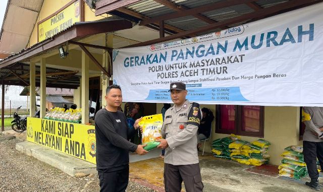 KabarLiputan.id, ACEH TIMUR – Sebanyak empat ton beras Stabilisasi Pasokan dan Harga Pangan (SPHP) habis terjual hanya dalam hitungan jam saat Gerakan Pangan Murah (GPM) di Polsek Simpang Jernih, Polres Aceh Timur, Polda Aceh, Senin, (15/09/2025). Beras mulai dijual pukul 08.00 WIB, dalam waktu kurang dari tiga jam, beras yang dijual seharga Rp 60 ribu per sak kemasan lima kilogram habis terjual.