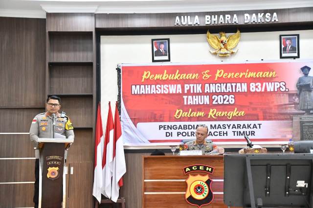 KabarLiputan.id, ACEH TIMUR – Kapolres Aceh Timur AKBP Irwan Kurniadi, S.I.K. pada Selasa (10/02/2026) pagi membuka kegiatan Pengabdian Masyarakat Mahasiswa STIK Lemdiklat Polri Angkatan 83 WPS Tahun 2026.