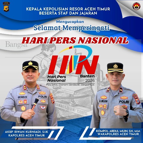 KabarLiputan.id, ACEH TIMUR – Dalam rangka memperingati Hari Pers Nasional (HPN) Tahun 2026, Kapolres Aceh Timur, Polda Aceh, AKBP Irwan Kurniadi, S.I.K. menyampaikan ucapan selamat serta apresiasi kepada seluruh insan pers di Indonesia.