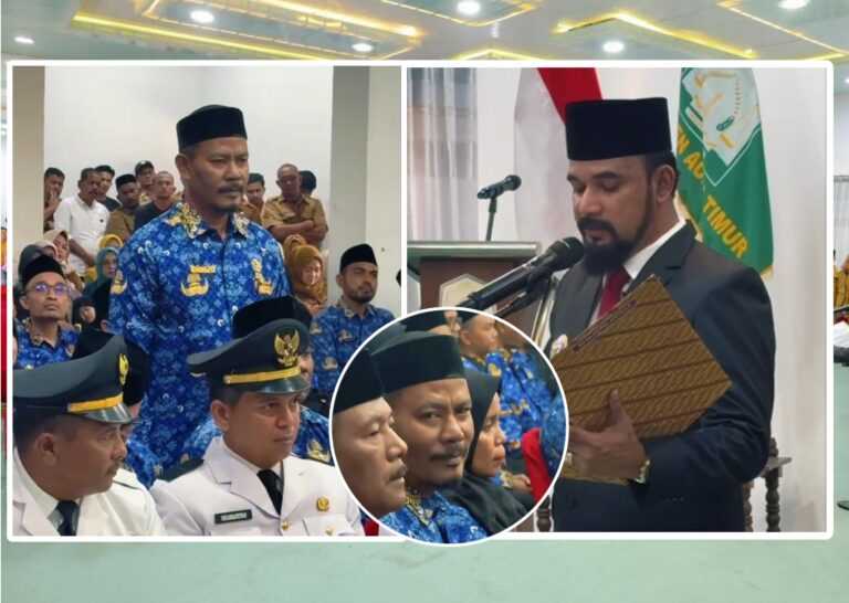 Bupati Aceh Timur, Iskandar Usman Al-Farlaky, melantik Ridwan, SPd, MPd, sebagai Kabid Pembinaan SD, bersama 144 pejabat administrator dan pengawas lainnya di Gedung Serbaguna Pendopo Idi, Senin (30/3/2025).