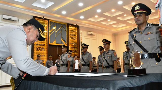 Dalam upacara tersebut dibacakan keputusan Kapolda Aceh Nomor ST/123/III/KEP.3/2026 dan ST/124/III/KEP.3/2026 tertanggal 2 Maret 2026 tentang pemberhentian dari dan pengangkatan dalam jabatan di lingkungan Polda Aceh.