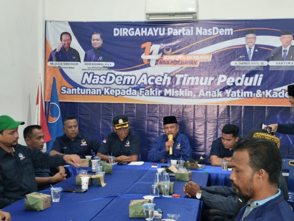 Sementara itu, Ketua DPD NasDem Aceh Timur, H Tarmizi Daud, mengatakan ulang tahun partai NasDem tahun menyongsong semangat “Konsisten Membawa Arus Perubahan”.