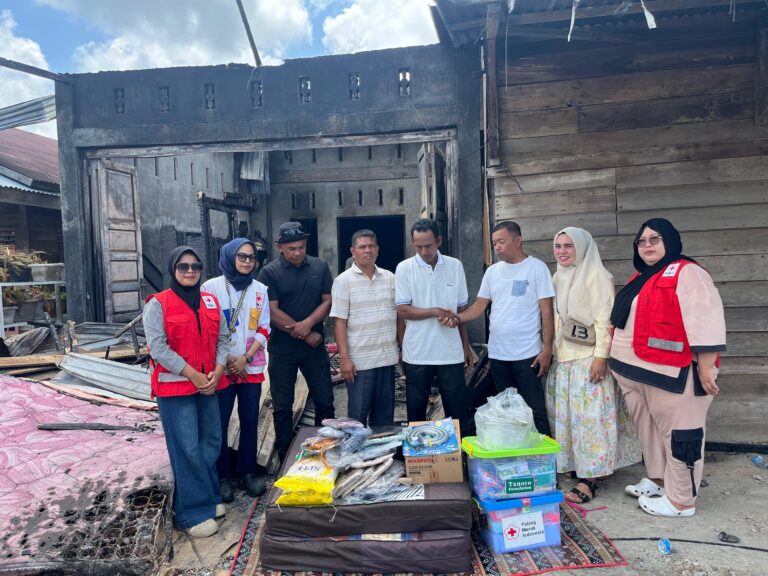 Ketua Palang Merah Indonesia (PMI) Fattah Fikri, menyalurkan bantuan masa panik untuk korban kebakaran yang terjadi di Gampong Blang Bitra, Kecamatan Ranto Peureulak, Jumat (27/3/2026) malam lalu.