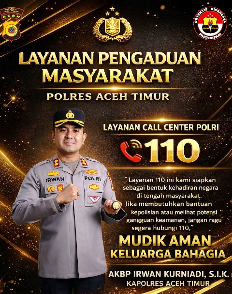 KabarLiputan.id, ACEH TIMUR – Polres Aceh Timur, Polda Aceh mengajak masyarakat untuk memanfaatkan layanan hotline Polri 110 sebagai saluran cepat pelaporan dan permintaan bantuan kepolisian, khususnya selama Ramadhan 1447 Hijriah hingga momentum Lebaran 2026.
