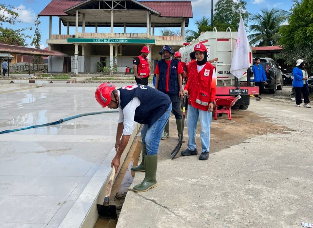 PMI Aceh Timur, juga melakukan pembersihan fasilitas umum seperti masjid, sekolah, dan rumah warga dari sisa lumpur serta material banjir.
