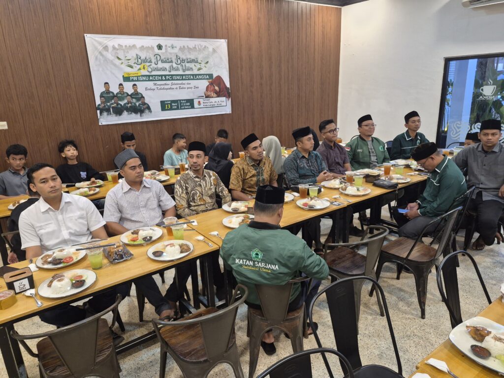 Kabarliputan.id Langsa | Pimpinan Wilayah Ikatan Sarjana Nahdlatul Ulama (PW ISNU) Aceh bersama Pengurus Cabang (PC) ISNU Kota Langsa menggelar silaturahmi dan santunan anak yatim yang dirangkai dengan buka puasa bersama di Noka Caffe, Kota Langsa, Jumat, (13/3/2026).