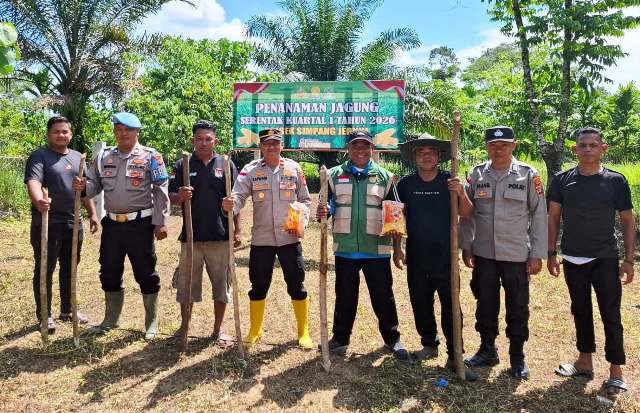 KabarLiputan.id, ACEH TIMUR – Upaya memperkuat ketahanan pangan terus dilakukan jajaran Kepolisian. Kali ini, Polsek Simpang Jernih, Polres Aceh Timur, Polda Aceh bersama kelompok tani melaksanakan penanaman jagung serentak kuartal I tahun 2026 di Desa Simpang Jernih, Kecamatan Simpang Jernih, Kabupaten Aceh Timur, Rabu (15/04/2026).