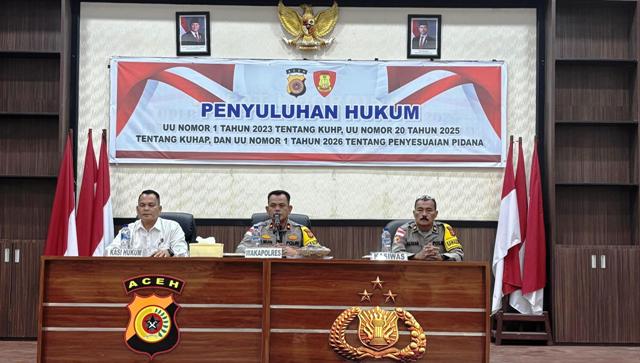 KabarLiputan.id, ACEH TIMUR – Polres Aceh Timur, Polda Aceh menunjukkan komitmennya dalam meningkatkan profesionalisme penegakan hukum dengan menyelenggarakan penyuluhan hukum terkait Undang undang Nomor 1 tahun 2023 tentang KUHP, Undang undang Nomor 20 tahun 2025 tentang KUHAP dan Undang undang Nomor 1 tahun 2026 tentang penyesuaian pidana. Selasa, (03/02/2026).